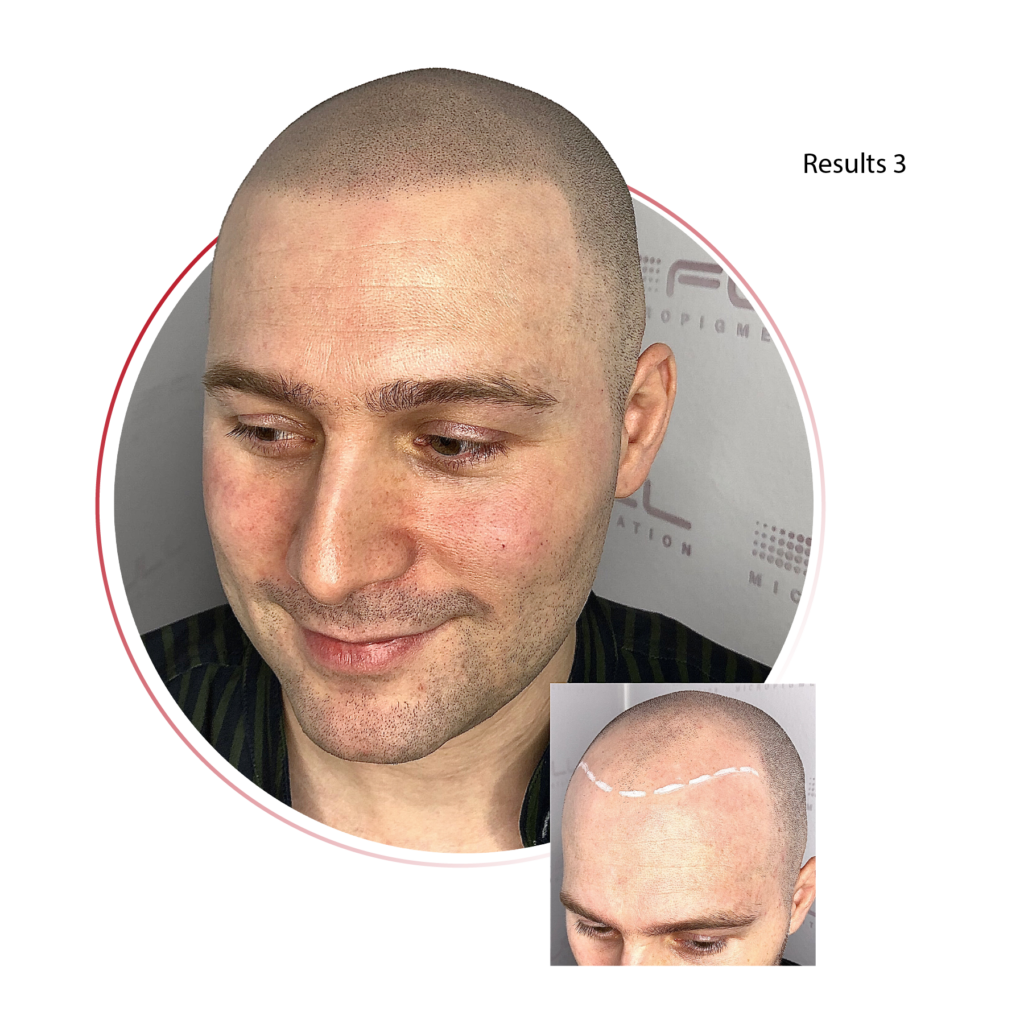 Full Micropigmentation expertly conceals hair transplant scars using Scalp Micropigmentation (SMP). Our skilled practitioners strategically apply micro-sized pigment deposits to mimic natural hair follicles, creating a seamless blend with existing hair. This non-invasive procedure provides a realistic and effective solution for minimizing the visibility of transplant scars, enhancing the overall aesthetic outcome.